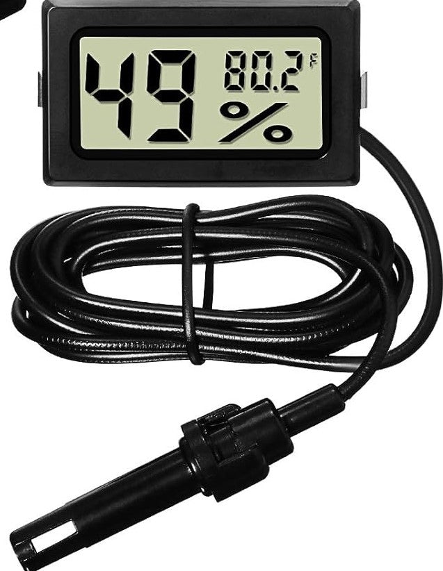 Easy to read temperature in F and humidity sensor in % that can mount onto the front mesh screen.